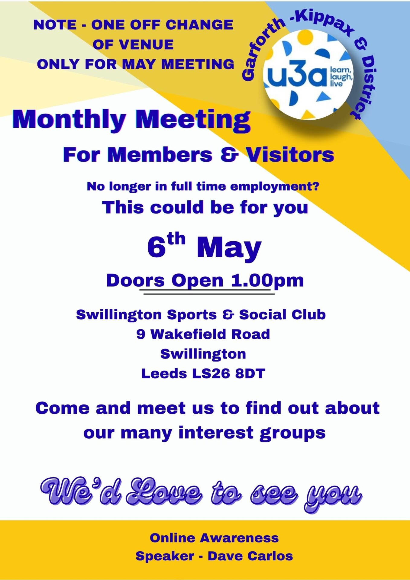 NOTE- ONE OFF CHANGE OF VENUE ONLY FOR 6TH MAY MEETING